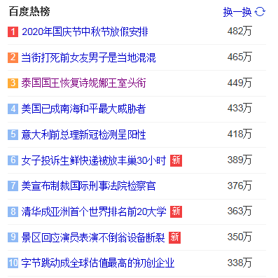1.2020年国庆节中秋节放假安排 猎头热点热度482万