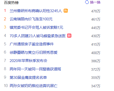 1.兰州兽研所布病确认阳性3245人 猎头热点热度478万