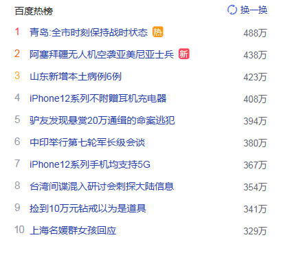 1. 青岛:全市时刻保持战时状态 猎头热点热度488万