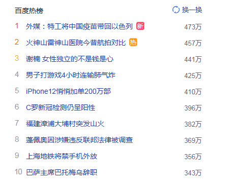 1.外媒:特工将中国疫苗带回以色列 猎头热度热点473万
