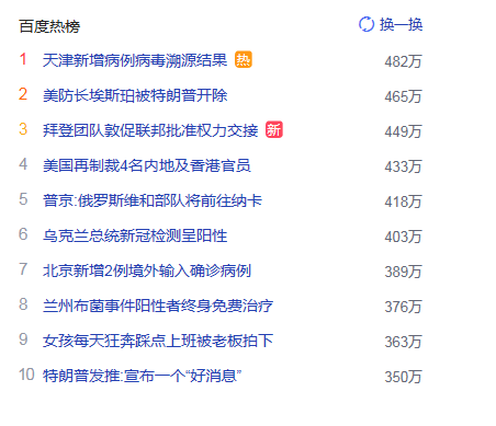 1.天津新增病例病毒溯源结果 猎头热度热点482万