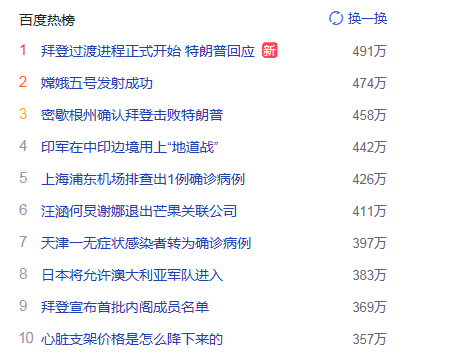 1. 拜登过渡进程正式开始 特朗普回应 猎头热度热点491万