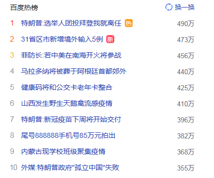 1. 特朗普:选举人团投拜登我就离任 猎头热度热点490万