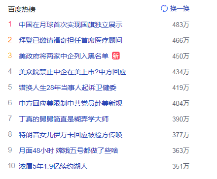3. 美政府将两家中企列入黑名单 猎头热度热点450万