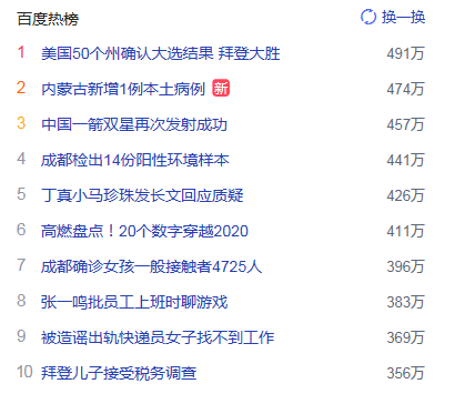 1. 美国50个州确认大选结果 拜登大胜 猎头热度热点491万